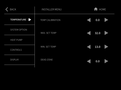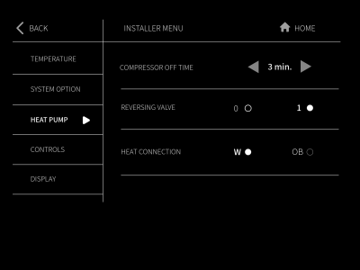 d. If heat pump is selected, the lefthand menu will populate with heat pump settings.