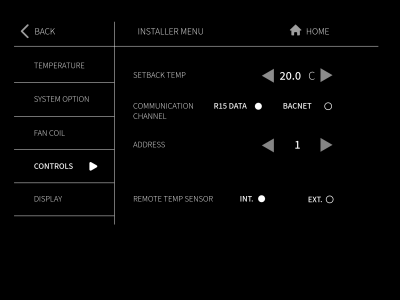 Note: If BACnet is selected, be sure to give your thermostat a unique thermostat address number that has not been used in the building.