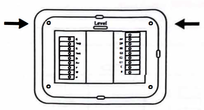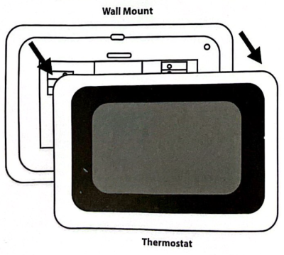 6. Mount the thermostat body to the back plate by gently pushing the body onto the wall plate (ensure up arrows are pointing up).