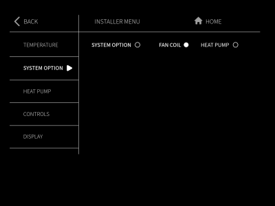 a. If fan coil is selected, the lefthand menu will populate with fan coil settings.